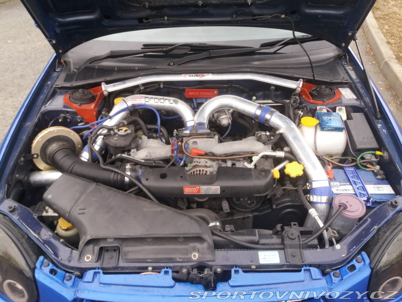 Subaru Impreza STI Prodrive Edition Limited 2001 Engine & Gearbox - WRX swap, modified Suspension - Cusco Vacanza, full setup HKS Blow Off TE37RT 9J 25 OFF + New RiKen Tires Frontal Intercooler FMIC ClutcMax Stage 1 Clutch - brand new DW65C Fuel Pump STI Injectors Short Shifter Original Sparco Steering Wheel Original Blitz Boost Gauge 260 km/h Speedometer STi Alcantara Ceiling Voltmeter Turbotimer Spec C roof vent Pioneer Monitor 4x2 Brakes *VF37 Turbo Kit - může být přidán k autu za 17 000Kč